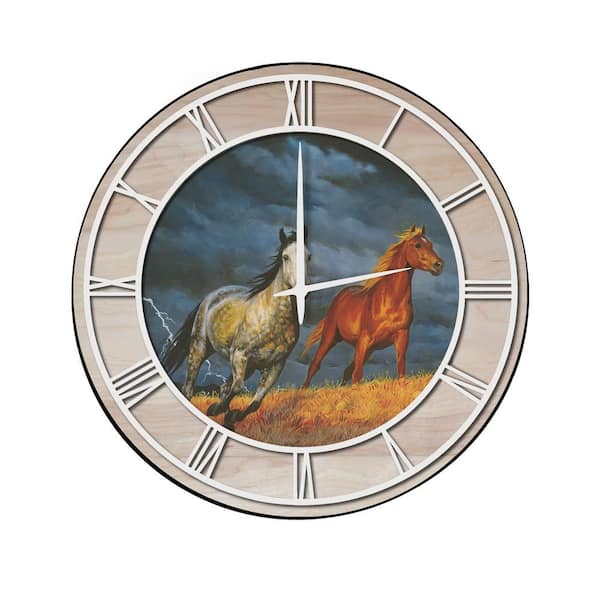 "Lightning" Woodgrain Accent and White Numbers Imaged Wall Clock