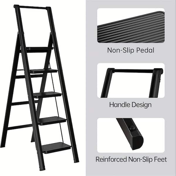 Lightweight Step Stool, 5-Step Steel Portable Folding Step Ladder with Wide Anti-Slip Pedals, 600 lbs. Load