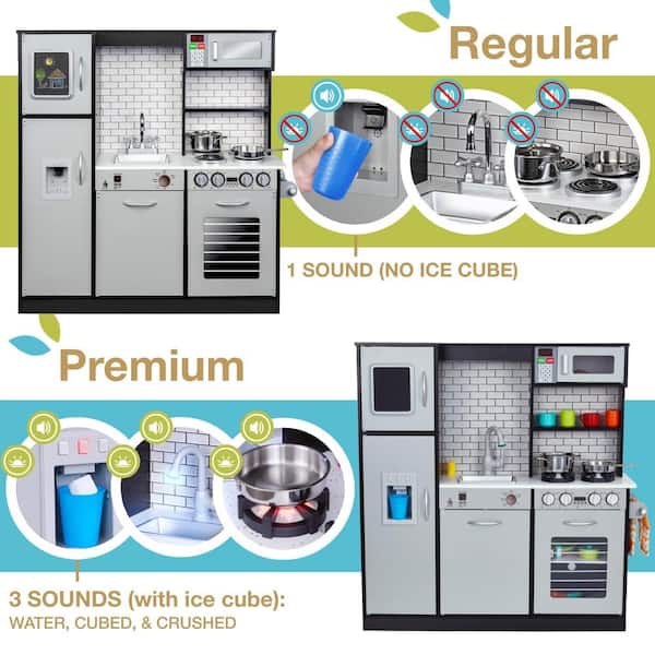 Premium Kids Kitchen Set, Wooden Pretend Play Kitchen with Sounds and Accessories - Charcoal