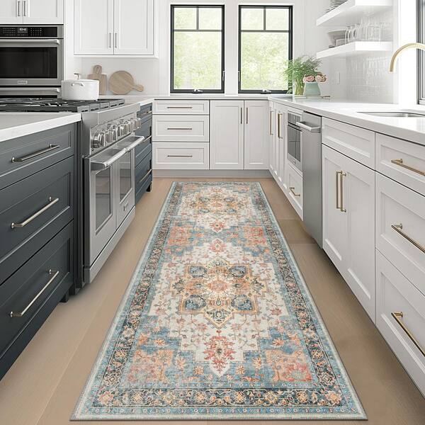 Medallion Blue Orange Mocha 2 ft. x 7 ft. Persian Area Rug