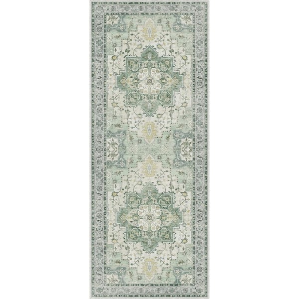 Medallion Green 2 ft. x 10 ft. Persian Area Rug