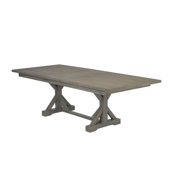 Linda 7-Piece Rectangular Rustic Grey Wood Top Table Set With Bench and 5-Beige Linen Fabric Chair with Tufted Button