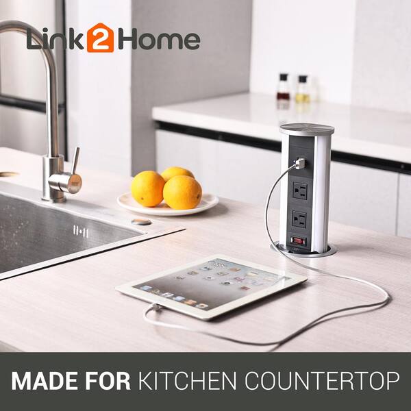 2-Outlets Automatic Pop Up with 10-Watt Induction Wireless Charger, 2 USB 3.4A, Splash Resistant, LED Light