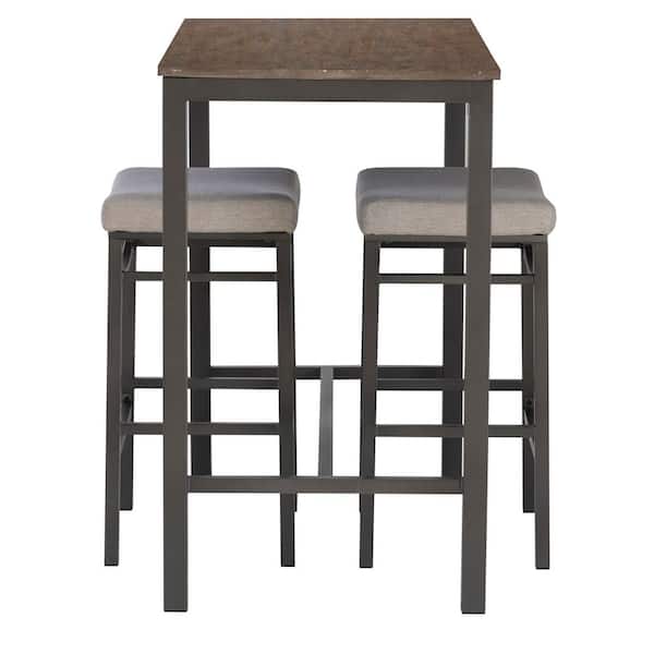 Betty 3-Piece Rectangle Pewter Wood Top Pub Dining Room Set Seats 2