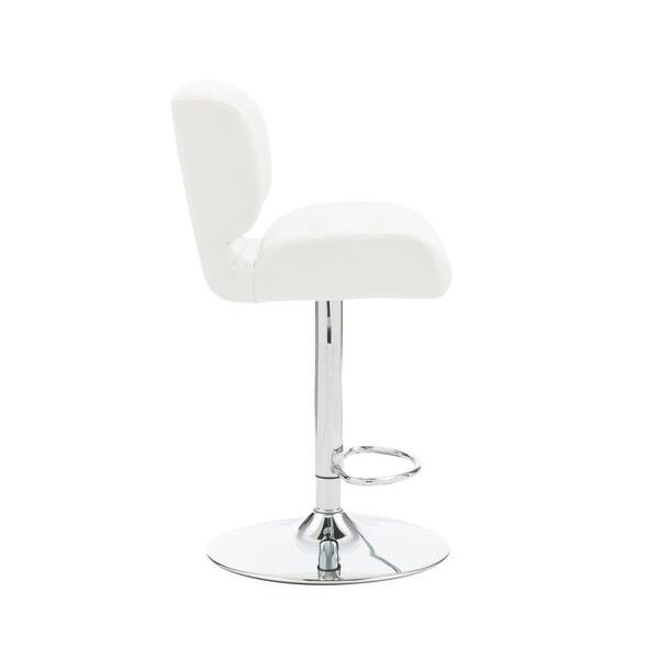 Brawn 38 in. H White Faux Leather Adjustable Barstool with Chrome Base