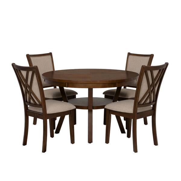 Carmen 5-Piece Round Brown Wood Top Dining Room Set Seats-4