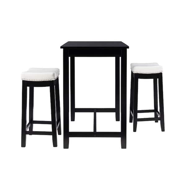 Concord 3-Piece Rectangle Counter Height Black and White Wood Top Dining Room Set Seats 2