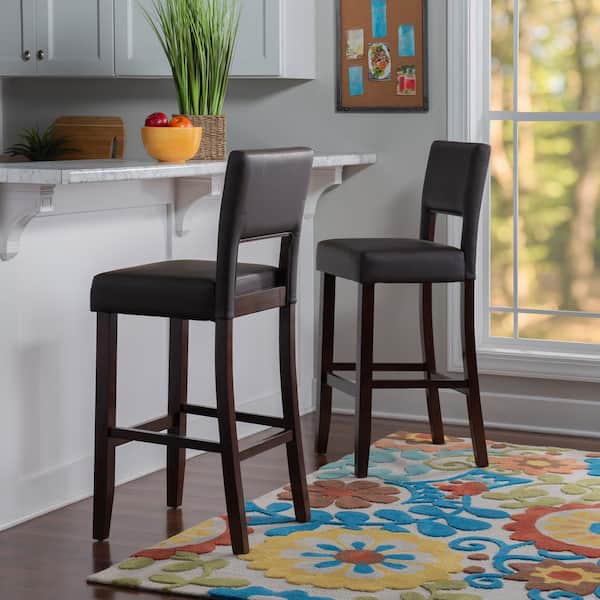 Edison 30 in. Espresso Brown High Back Wood Bar Stool with Faux Leather Seat