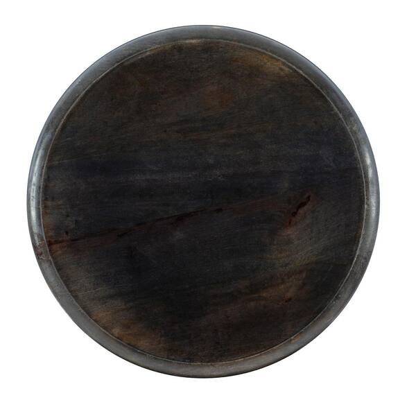 Elia Dark Grey Solid Mango Wood Side Table with Hand Carved Lattice Pattern