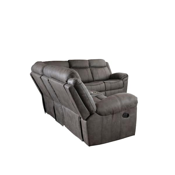Ganni Manual Reclining 68 in. Pillow Top Arms 3-Piece Faux Leather Sectional Sofa in. Stone Gray