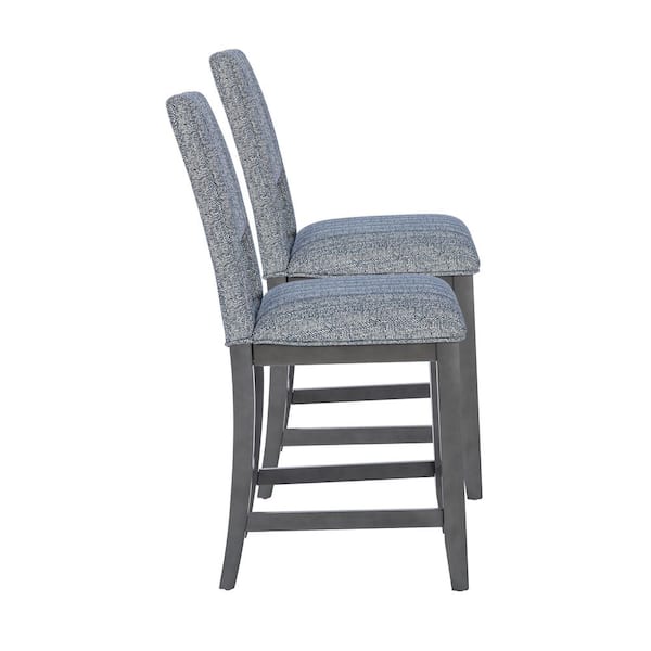 Jesey 25 in. Distressed Charcoal Gray High Back Wood Counter Stool with Fabric Seat Set of 2