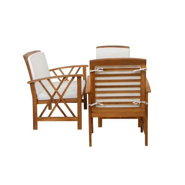 Joni Outdoor Brown 4-Piece Acacia Wood Patio Conversation Seating Set