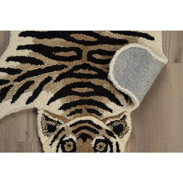 Jungle Tiger Gold and Black 2 ft. x 3 ft. Modern Tufted Animal Print Wool Specialty Indoor Accent Area Rug