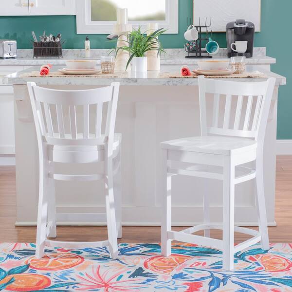 Lux 24 in. Seat Height White High back wood frame Counter stool with a wood seat (set of 2)