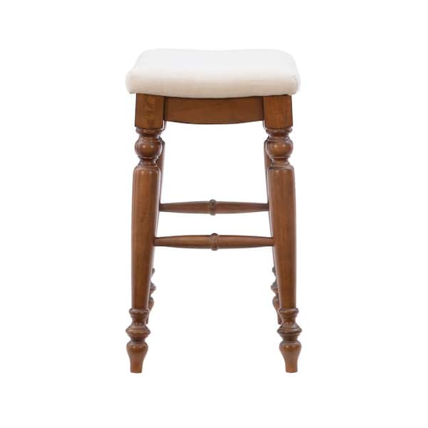 Marino 25 in. Walnut Backless Wood Counter Stool with Fabric Seat