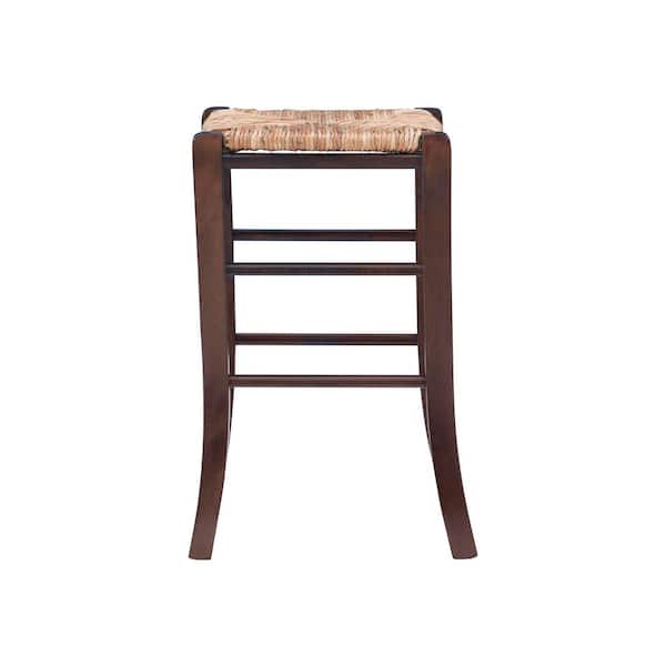 Marlene 24.5 in. Walnut Backless Wood Counter Stool with Rush Seat Set of Two