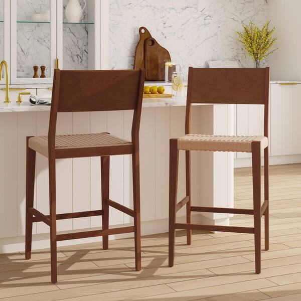 Marlene 29 in. Seat Height Brown Full back wood frame Barstool Rope Seat (Set of 2)