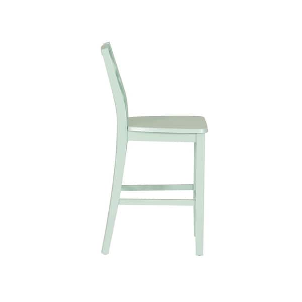 Mori 25.25 in. Mint Green Full Back Wood Counter Stool with Wood Seat