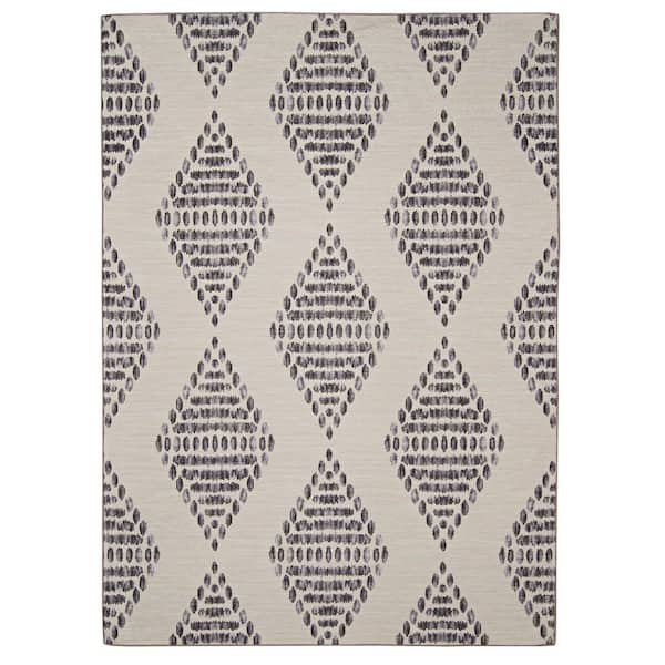Nashua Ivory and Brown 7 ft. x 9 ft. Washable Geometric pattern Polyester Indoor/Outdoor Area Rug