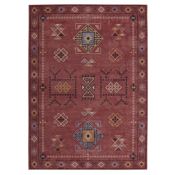 Park Aubrey Red and Cream 5 ft. x 7 ft. Traditional Woven Distressed Polyester Rectangle Indoor Area Rug