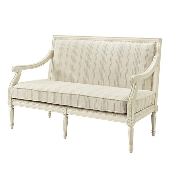 Rebecca 55.3 in. Brushed Ivory Pattern Polyester 2-Seater Settee with Wood Frame