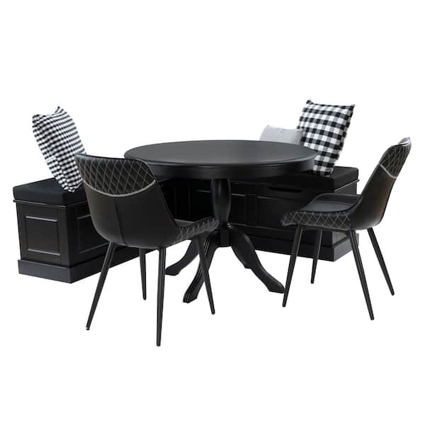 Rockhill Nook 5-Piece Round Black Wood Top Dining Room Set Seats 6