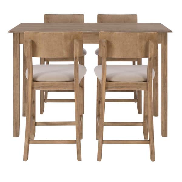 Rodman 5-Piece Rectangle Graywash Wood Top Counter Dining Room Set Seats 4