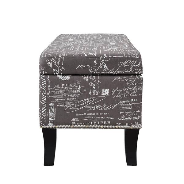Stephanie Grey Script Pattern Linen Storage Bench with Black Finished Legs