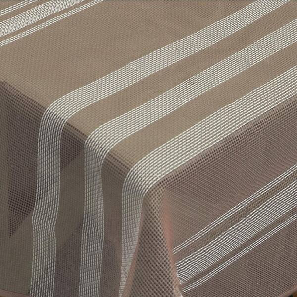 Bistro Stripe 60 in. x 84 in. Sand Vinyl and Poly Tablecloth