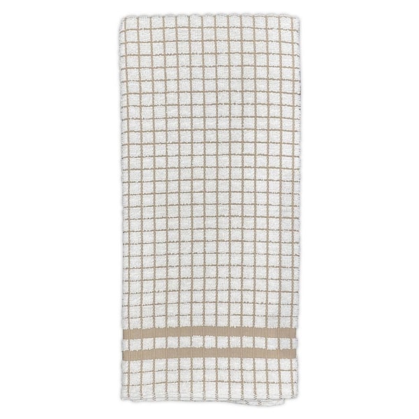 Hampton Beige Checkered Cotton Blend Kitchen Towel Set of 8