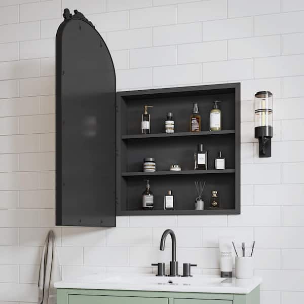 19.7 in. W x 30.3 in. H Classic Arched Recessed/Surface Mount Medicine Cabinet with Mirror in Black