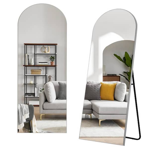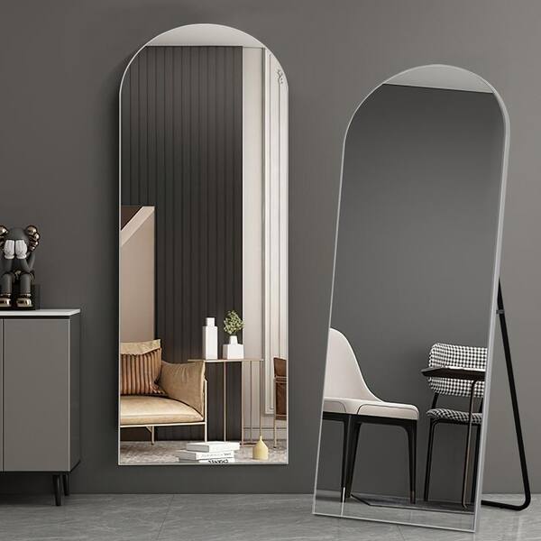 22 in. x 65 in. Modern Arched Framed White Full-Length Mirror Aluminum Alloy Mirror Leaning Mirror with Standing Holder