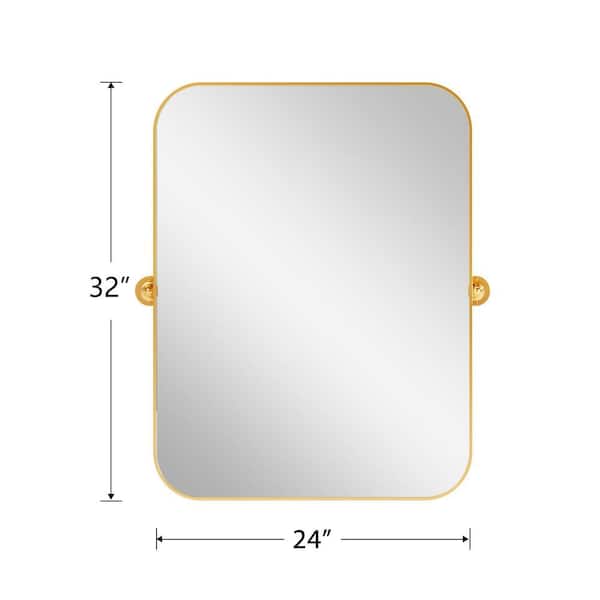 24 in. W x 32 in. H Rectangular Metal Framed Pivoted Bathroom Wall Vanity Mirror in Gold