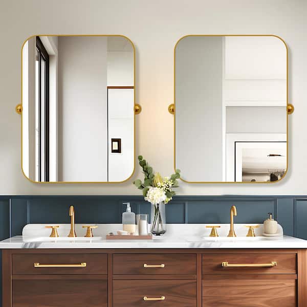 24 in. W x 36 in. H Rectangular Metal Framed Pivoted Bathroom Wall Vanity Mirror in Gold (Set of 2)