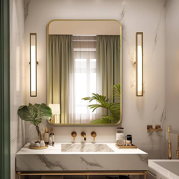 25 in. W x 28 in. H Modern Deep Frame Decorative Wall Mirror in Gold