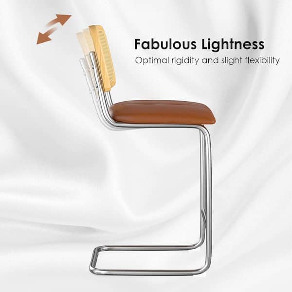 26 in. Brown Upholstered Faux Leather Counter Height Bar Stools with Rattan Back (Set of 2)