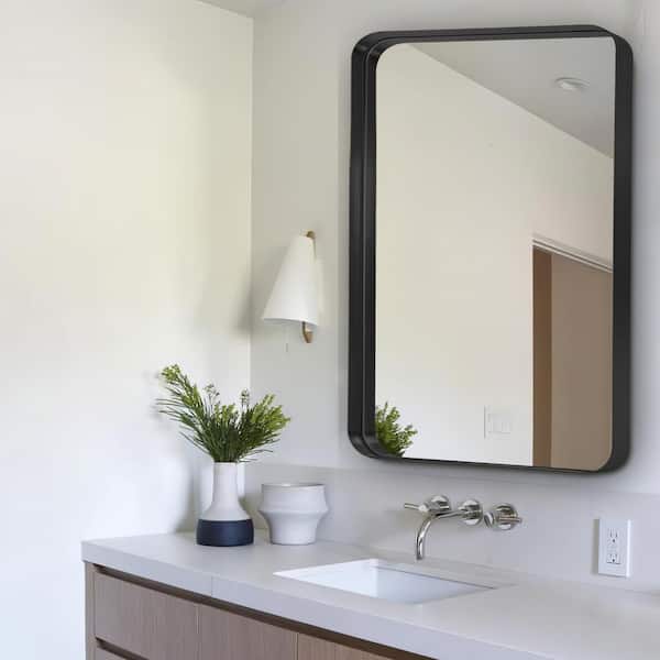 26 in. W x 38 in. H Aluminium Alloy Deep Modern Rectangle Framed Decorative Mirror with Rounded Corner in Black