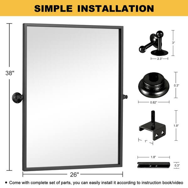 26 in. W x 38 in. H Rectangular Metal Framed Pivoted Bathroom Wall Vanity Mirror in Black