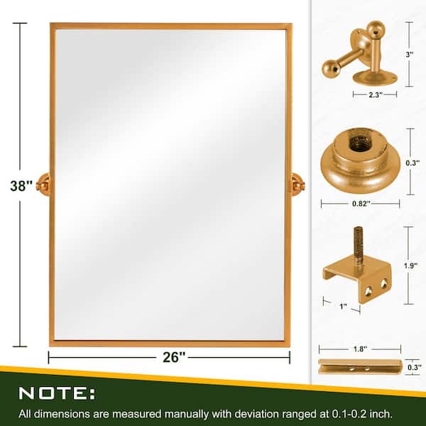 26 in. W x 38 in. H Rectangular Metal Framed Pivoted Bathroom Wall Vanity Mirror in Gold
