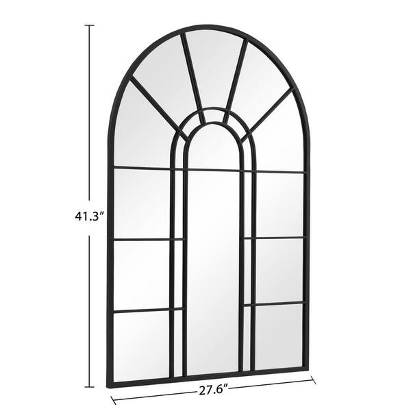 28 in. W x 41 in. H Arched Metal Frame Wall Mirror in Black