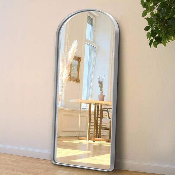 28 in. W x 71 in. H Aluminium Alloy Deep Modern Arch Framed Full Length Mirror with Rounded Corner in Silver