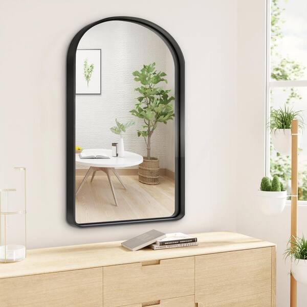 30 in. W x 40 in. H Aluminium Alloy Deep Modern Arch Framed Decorative Mirror with Rounded Corner in Black