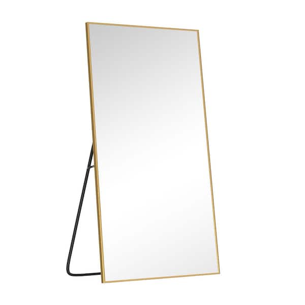 38 in. W x 75 in. H Rectangular Metal Framed Full Length Wall Mirror Free Standing Mirror in Gold