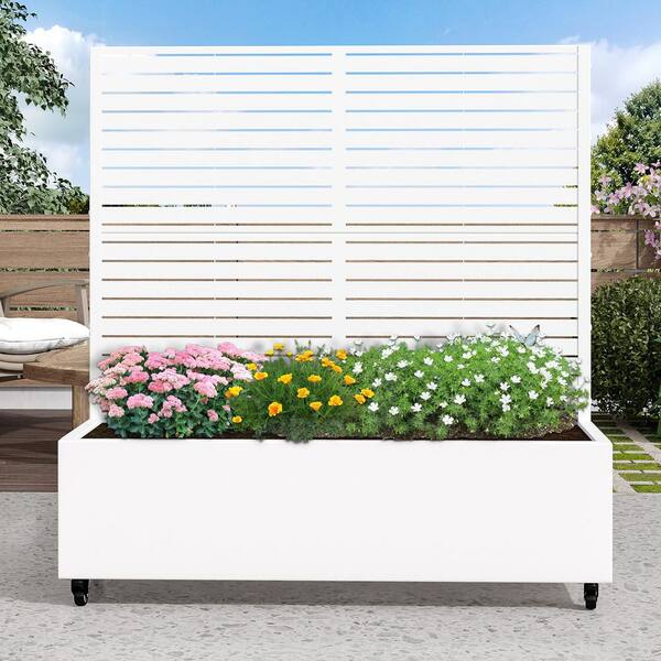 47 in. H x 47 in. W Rectanglar White Outdoor Metal Privacy Screen Planter Box Wall Decor in Louvered Pattern