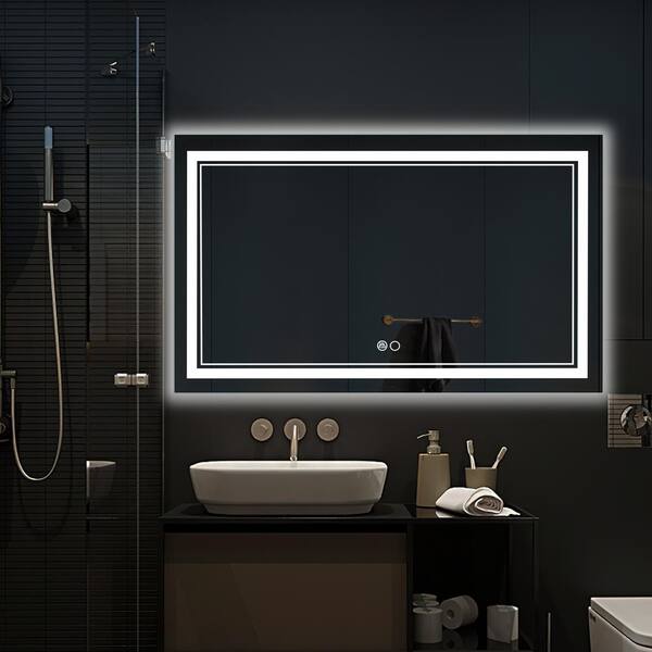 47 in. x 32 in. Bathroom Modern LED Right-Angle Inner Light-Emitting Rectangle Frameless Wall Vanity Mirror