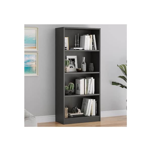 56 in. Tall Grey Wood 4-Shelf Bookcase