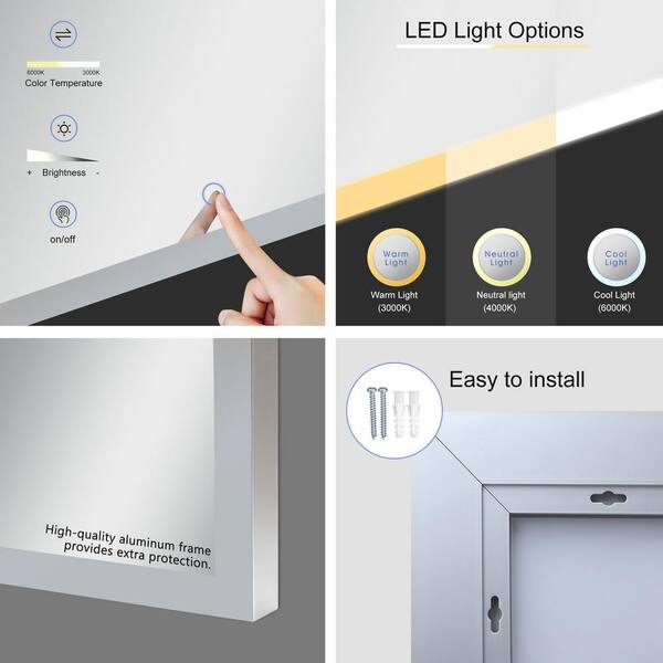 64 in. W x 22 in. H Rectangular Metal Framed White Dimmable LED Leaning Mirror Wall-Mounted Bathroom Vanity Mirror