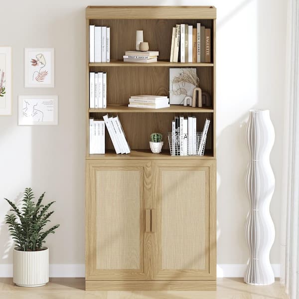 67 in. Tall Light Brown Wood 5-Shelf Bookcase with Adjustable Shelves