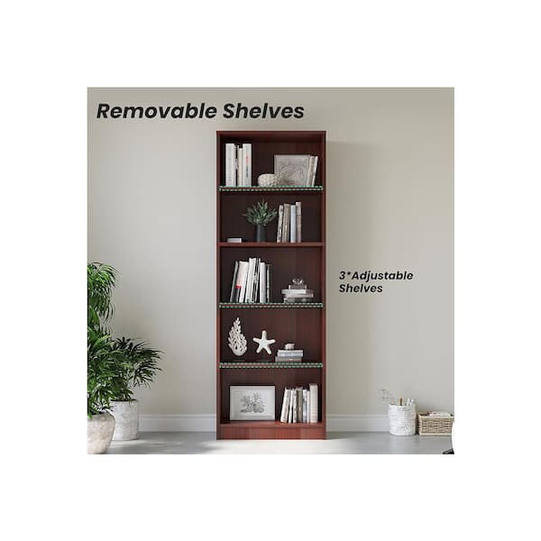 69 in. Tall Mahogany Wood 4-Shelf Bookcase