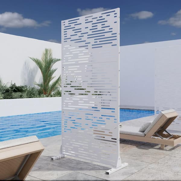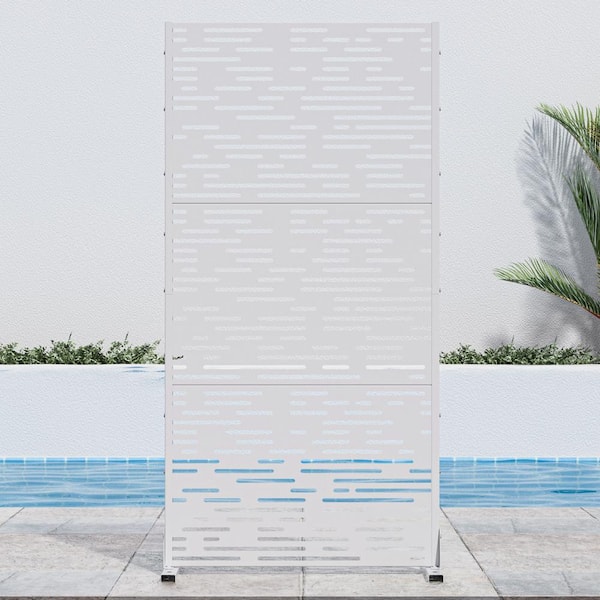 72 in. H x 35 in. W White Outdoor Metal Privacy Screen Garden Fence Wave Pattern Wall Applique
